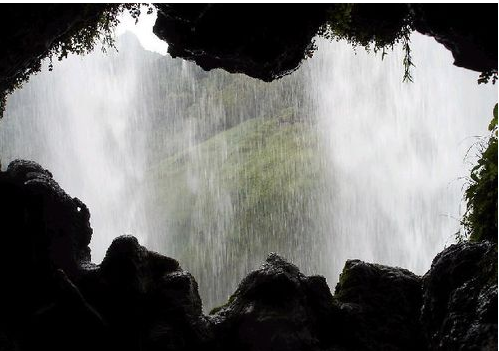 瀑布在山的另一边,挺远却又在身后,无雨却又水雾朦胧,一不小心就会湿身哦
